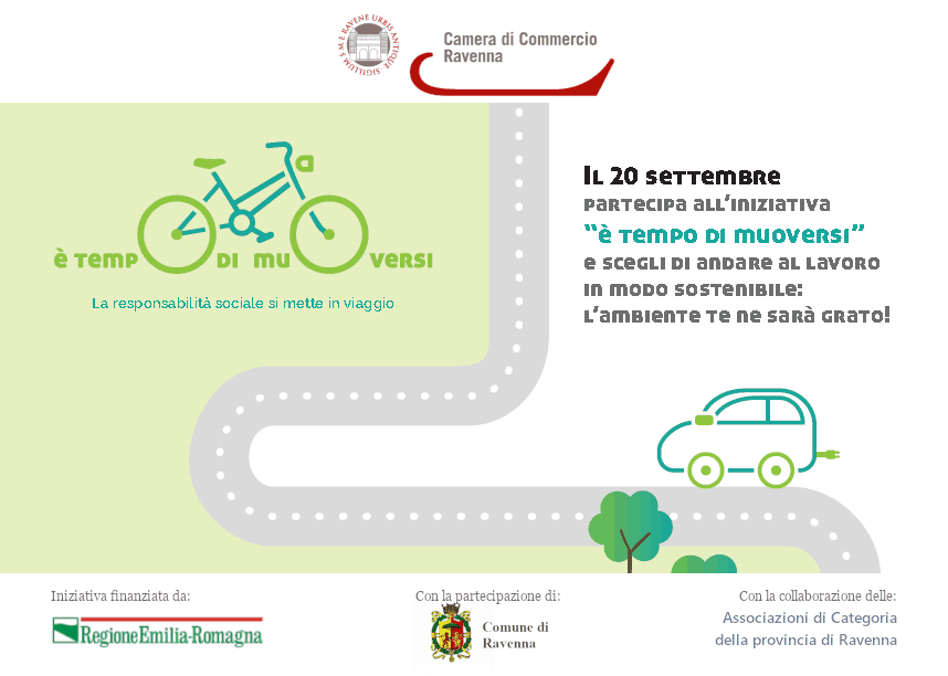 Cia Romagna (zona di Ravenna) aderisce all’iniziativa “E’ tempo di muoversi”, promossa e organizzata nell’ambito della Settimana Europea della Mobilità dalla Camera di Commercio di Ravenna, con la partecipazione del Comune di Ravenna e la collaborazione delle Associazioni di categoria del territorio.