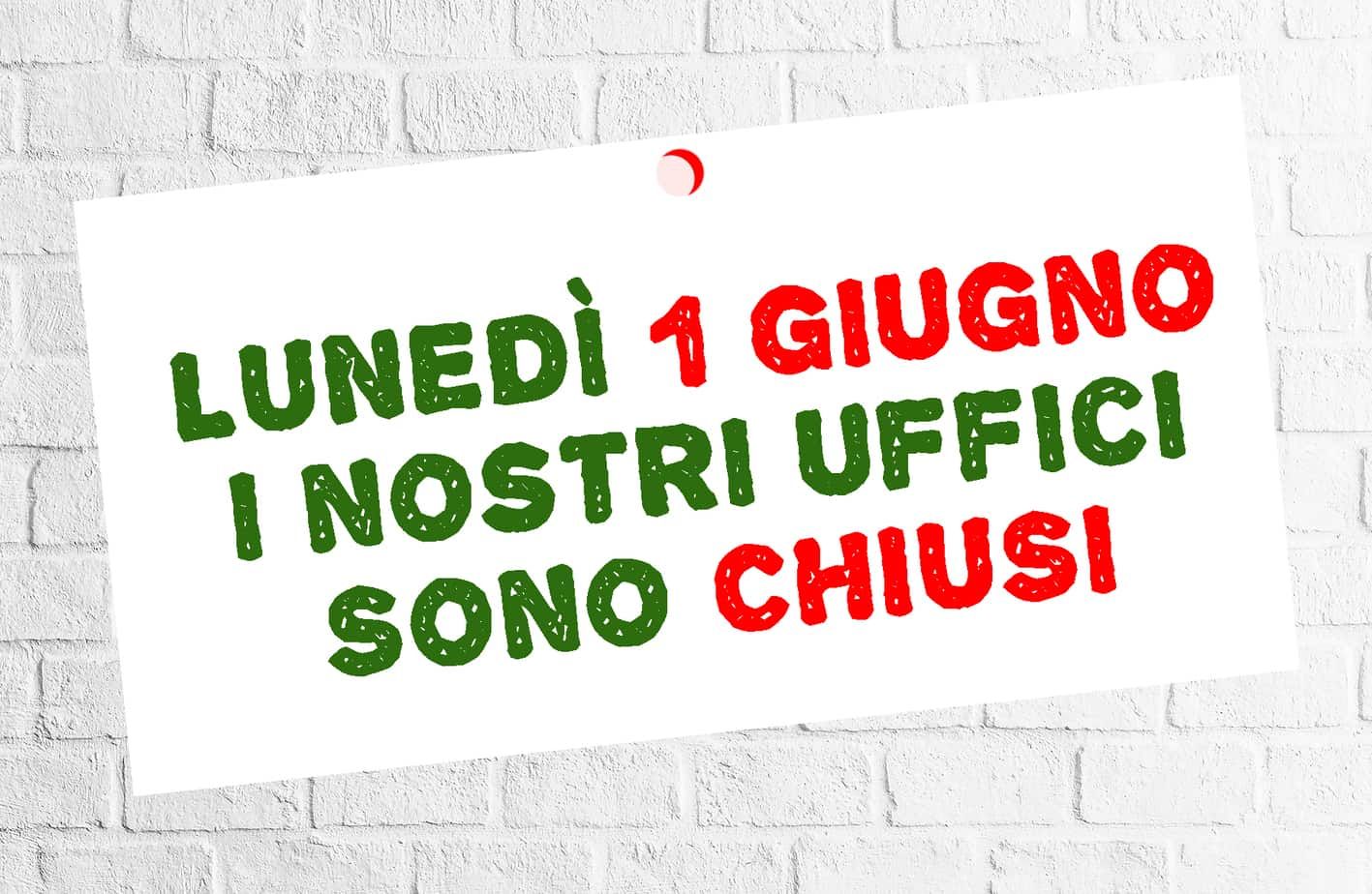 1 giugno: chiusura dei nostri uffici