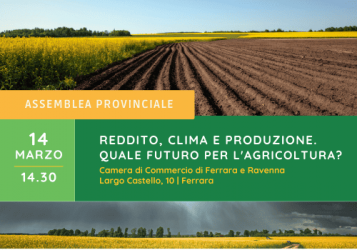 Una panoramica sulle problematiche del comparto agricolo ma anche la ricerca di possibili soluzioni per uscire dalle gravi difficoltà che lo attraversano ormai da alcuni anni. Sono questi gli obiettivi dell’assemblea provinciale di Cia-Agricoltori Italiani Ferrara che si terrà venerdì 14 marzo a partire dalle 14.30 presso la Camera di Commercio di Ferrara e avrà un titolo che riassume perfettamente l’attuale scenario del settore: “Reddito, clima e produzione. Quale futuro per l’agricoltura?”. All’incontro, aperto a tutte le aziende agricole associate, parteciperanno non solo i rappresentanti istituzionali, ma anche una serie di esperti di clima, produttività e gestione del rischio in agricoltura che faranno il punto sulle problematiche citate nel titolo.