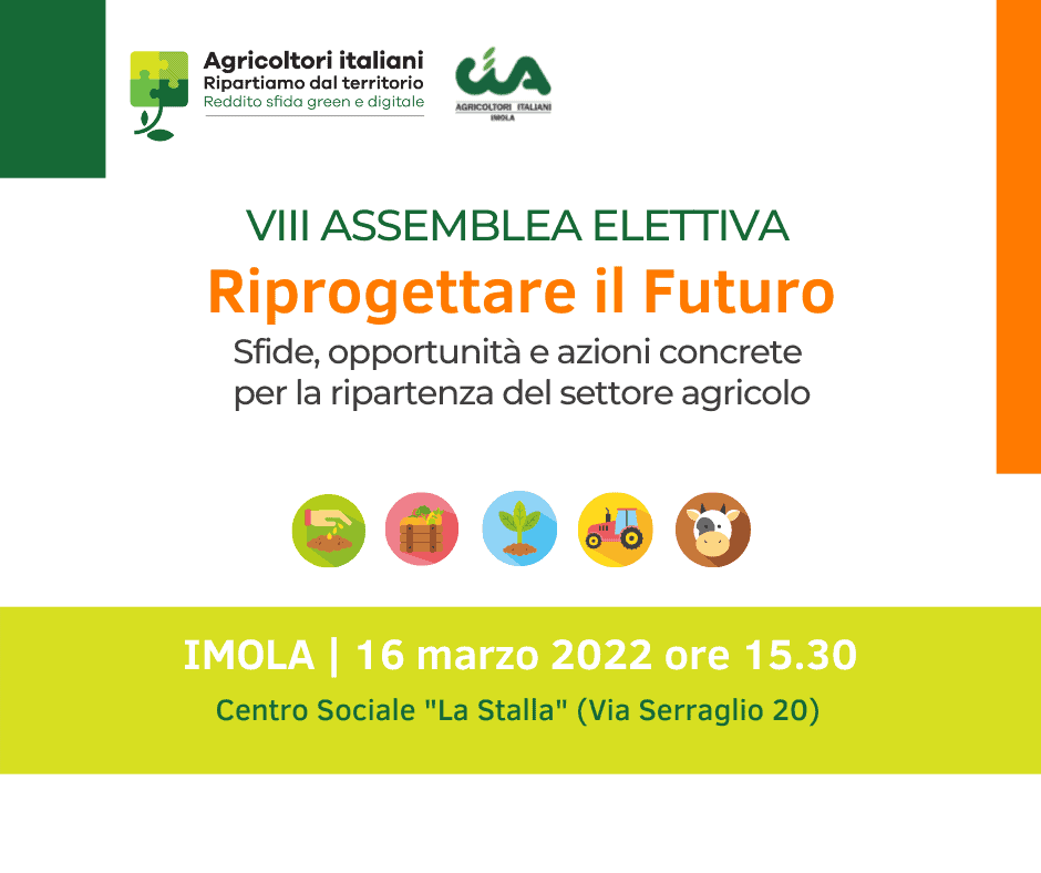 Il prossimo 16 marzo, a partire dalle 15, si terrà la VIII Assemblea Elettiva di Cia-Agricoltori Italiani Imola presso il centro sociale “La stalla” (Via Serraglio 20/B)
